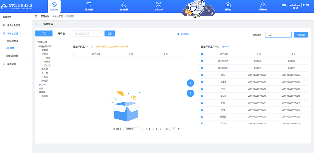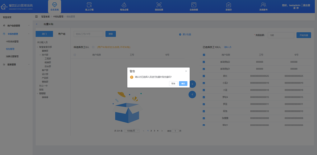 批量發放餐補