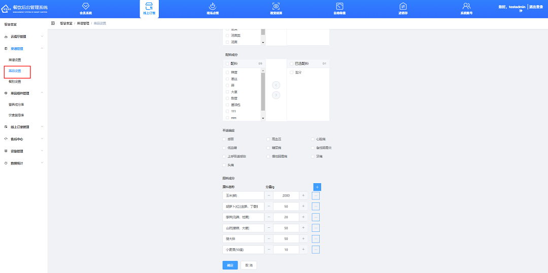 ④勾選不宜進(jìn)食此菜品的特殊病癥(用于醫(yī)院),若無(wú)此需求可不勾選;