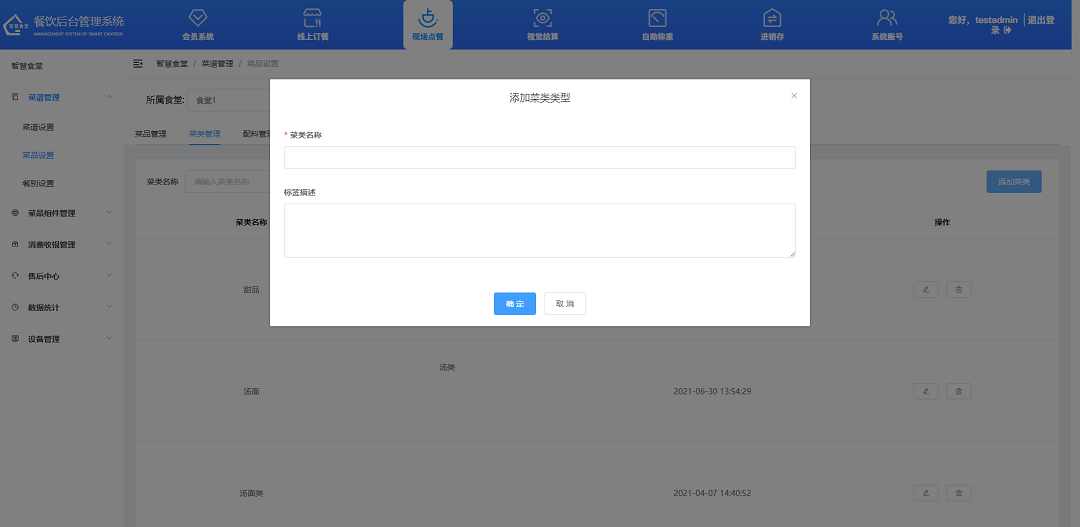 ②輸入菜類(lèi)名稱(chēng)、備注,點(diǎn)擊“確定”按鈕,即添加成功。