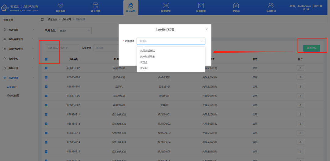 ①選擇不同食堂的相關設備進入查看。