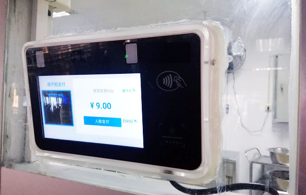 第一種刷臉就餐模式,在學校智慧食堂內每個窗口都裝有一臺帶有人臉識別功能的智能消費機,每臺機器裝有攝像頭,可以觸屏操作,外表和普通平板電腦極為相似。學生站在“刷臉器”前不到1秒鐘,身份就會被識別出來,姓名、套餐類型等就餐信息便出現在屏幕上,學生確認信息無誤后,點擊“確認”即可完成支付,整個過程花費時間不超過5秒鐘。
