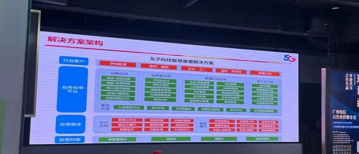 作為中國電信廣州分公司合作伙伴,戈子科技攜5G+智慧食堂產品體系、5G+智慧食堂解決方案等亮相會議展區,戈子科技陳總受邀以《5G+智慧食堂解決方案》為題發表演講。
