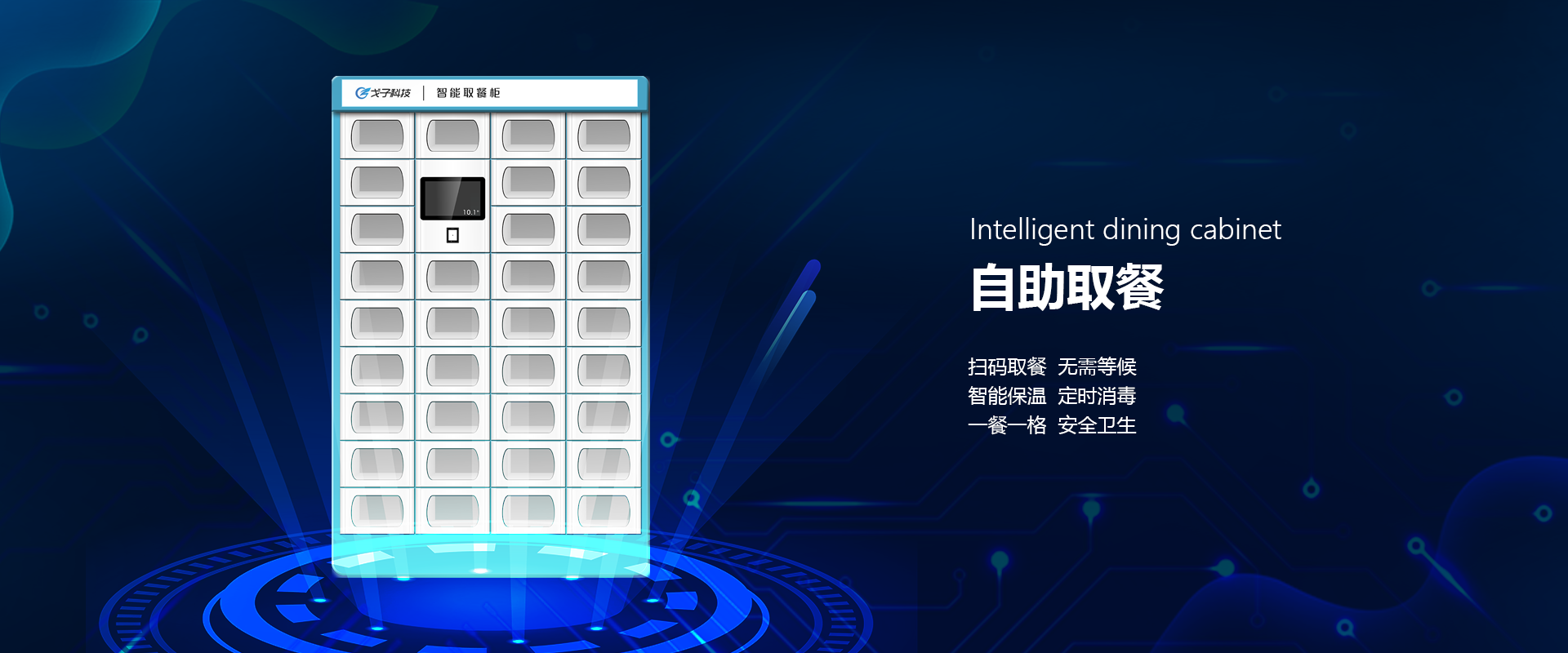 通過微信點餐,點餐后數據傳輸后廚配餐,后廚在消費者制定的就餐時間點和地址,將餐放置于最近的取餐柜內,消費者通過接受取餐碼在預訂的柜子自助取餐。